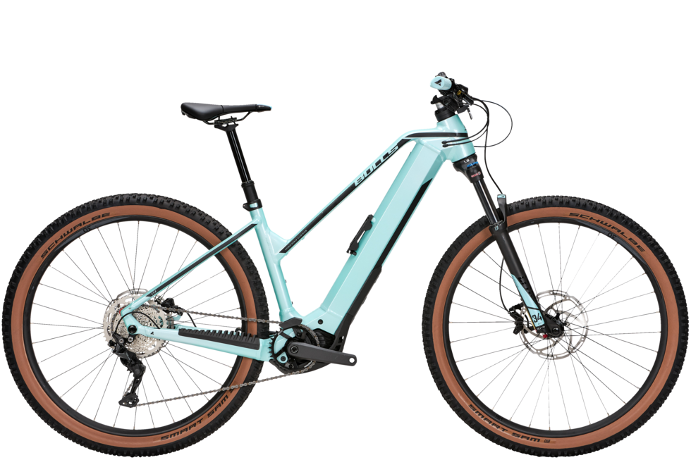 Maximale Fahrdynamik ist das Metier des Sonic EVA. Seine Luftfedergabel mit 120 mm Weg bügelt auch verblockte Trails glatt, und großvolumige 29-Zoll-Reifen sorgen für optimale Dämpfung und sehr gutes Überrollverhalten. Im Downhill bewährt sich die absenkbare Sattelstütze mit je nach Rahmengröße 100 bis 150 mm Verstellweg. Die 10-Gang-Schaltung harmoniert bestens mit dem drehmomentstarken Bosch Performance CX, und für Sicht und Sicherheit auf langen Touren lässt sich das Bike mit MonkeyLink-Leuchten ausstatten, die vom Antriebsakku gespeist werden.