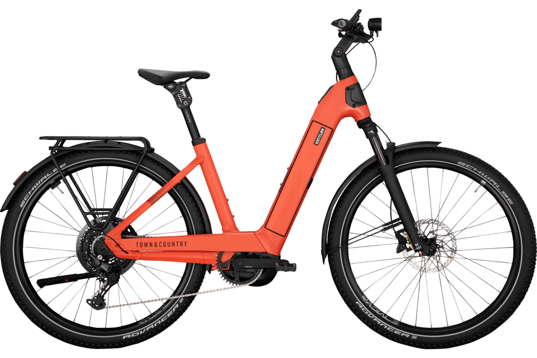 Highlights des TOWN & COUNTRY CX10: Der Aluminium-Kettenkasten, er schützt nicht nur den Antrieb vor Schmutz und Feuchtigkeit, sondern sorgt dank seiner Korrosionsbeständigkeit auch für eine saubere Optik und reduziert dazu den Wartungsaufwand. Der im Unterrohr integrierte Akku trägt zu einem schlanken, aufgeräumten Design bei. Das beleuchtete Logo ist nicht nur ein optisch schönes Element, sondern erhöht auch die Sicherheit durch bessere Sichtbarkeit des E-Bikes im Straßenverkehr. Die Möglichkeit zur Frontkorb-Montage – mit einer maximalen Belastung von ca. 10 kg – bietet zusätzlichen Komfort im täglichen Gebrauch. Der Bosch Performance Line CX Antrieb der neuesten Generation mit 85 Nm Drehmoment und einer Maximalleistung von 600 W bietet kraftvolle und effiziente Unterstützung auf jeder Strecke. Der neue PowerTube-Akku sorgt für noch mehr Reichweite und Ausdauer auf jeder Tour. Dank der optimierten Rahmengeometrie, die ein ergonomisches und souveränes Fahrverhalten garantiert – besonders in Kurven oder bei hohem Tempo – wird jede Fahrt zum Vergnügen.