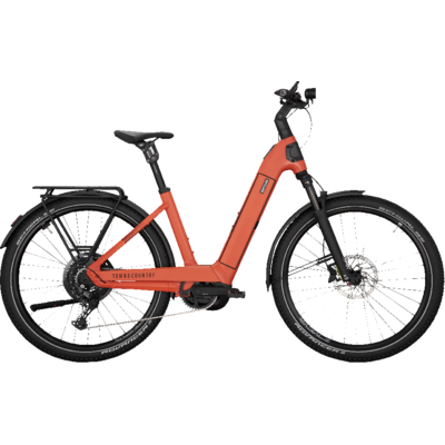 Highlights des TOWN & COUNTRY CX10: Der Aluminium-Kettenkasten, er schützt nicht nur den Antrieb vor Schmutz und Feuchtigkeit, sondern sorgt dank seiner Korrosionsbeständigkeit auch für eine saubere Optik und reduziert dazu den Wartungsaufwand. Der im Unterrohr integrierte Akku trägt zu einem schlanken, aufgeräumten Design bei. Das beleuchtete Logo ist nicht nur ein optisch schönes Element, sondern erhöht auch die Sicherheit durch bessere Sichtbarkeit des E-Bikes im Straßenverkehr. Die Möglichkeit zur Frontkorb-Montage – mit einer maximalen Belastung von ca. 10 kg – bietet zusätzlichen Komfort im täglichen Gebrauch. Der Bosch Performance Line CX Antrieb der neuesten Generation mit 85 Nm Drehmoment und einer Maximalleistung von 600 W bietet kraftvolle und effiziente Unterstützung auf jeder Strecke. Der neue PowerTube-Akku sorgt für noch mehr Reichweite und Ausdauer auf jeder Tour. Dank der optimierten Rahmengeometrie, die ein ergonomisches und souveränes Fahrverhalten garantiert – besonders in Kurven oder bei hohem Tempo – wird jede Fahrt zum Vergnügen.