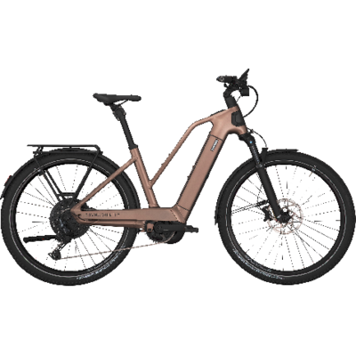 Das E-Trekking-Bike vereint modernste Technik, hohe Belastbarkeit und durchdachte Ausstattung – perfekt für lange Touren, tägliches Pendeln und anspruchsvolle Freizeitfahrer. Angetrieben wird es vom bewährten Bosch Performance Line CX Motor, der für seine kraftvolle Unterstützung und Zuverlässigkeit bekannt ist – ideal für längere Fahrten und anspruchsvolle Steigungen. Unterstützt wird das System durch einen leistungsstarken 800 Wh Akku, der eine besonders hohe Reichweite ermöglicht und so auch ausgedehnte Touren ohne Ladepause erlaubt. Neu in der Ausstattung ist das Shimano Cues Di2 Schaltwerk, das für präzise, elektronische Schaltvorgänge sorgt und so den Fahrkomfort deutlich erhöht. Zusammen mit dem robusten Rahmen ist das E-Bike für ein zulässiges Gesamtgewicht von 180 kg ausgelegt – optimal für schwere Fahrer-und Fahrerinnen oder zusätzliches Gepäck. Apropos Gepäck: Der MonkeyLoad-Gepäckträger mit 27 kg Tragkraft bietet ausreichend Kapazität für Gepäckträger-Taschen oder Kindersitze und ist mit dem MonkeyLoad-System besonders einfach zu nutzen. Für Sicherheit bei jeder Witterung sorgen hydraulische Scheibenbremsen, die gleichmäßig und zuverlässig verzögern. Die verbaute SR Suntour Federgabel mit 100 mm Federweg bietet hohen Fahrkomfort, auch auf unebenen Wegen. Ein weiteres Highlight ist das Rahmendesign in der Farbe brown gold matt, das dem Bike einen edlen und zugleich sportlichen Look verleiht. Besonders praktisch und stilvoll zugleich ist das integrierte, beleuchtete Frontlogo, das nicht nur ein optisches Highlight darstellt, sondern auch zur besseren Sichtbarkeit beiträgt. Ergänzt wird dies durch ein integriertes Bremslicht, das die Sicherheit im Straßenverkehr zusätzlich erhöht. Das Bosch Kiox 500 Display liefert alle wichtigen Fahrdaten übersichtlich und modern gestaltet. Für zusätzlichen Diebstahlschutz ist ein Rahmenschloss verbaut. Dieses Trekking-Bike ist damit nicht nur technisch auf dem neuesten Stand, sondern auch alltagstauglich, langlebig und komfortabel.